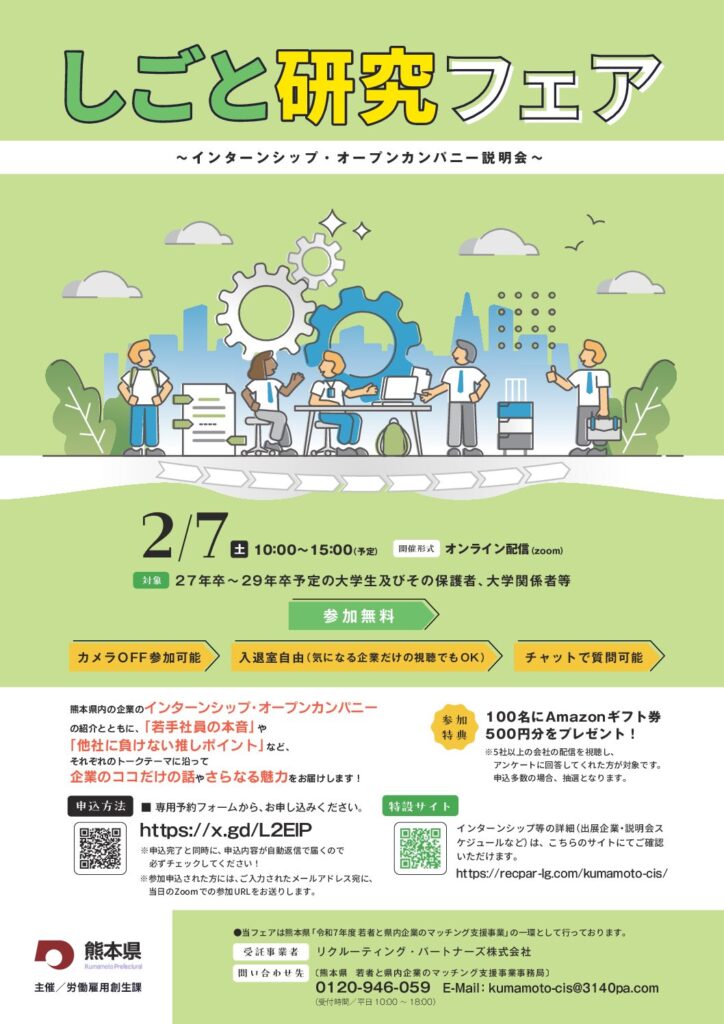 TEL:0120-946-059(熊本県 若者と県内企業のマッチング支援事業事務局)